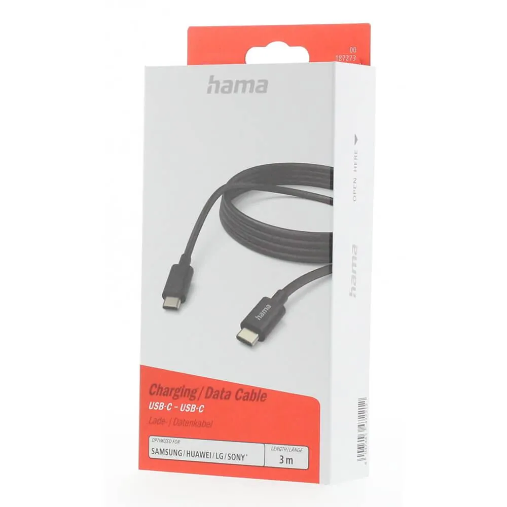 Hama Laddnings/Datakabel, USB-C - USB-C. 3 m extra lång kabel för mer oberoende och flexibilitet.