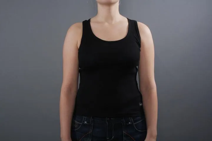 Svart linne med litet tryck längst upp på ryggen. Litet Hardcore märke på sidan. 100% Bomull. Dam, svart, small.