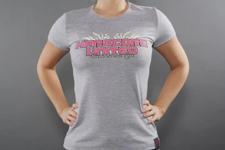 T-shirt med tryck på bröstet. 95% bomull, 5% spandex. 160gr/m2. Dam, grå, medium.