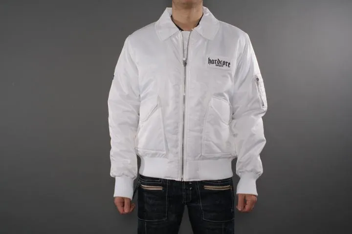 Stor Hardcore United logo broderad på ryggen i samma färg som jackan.