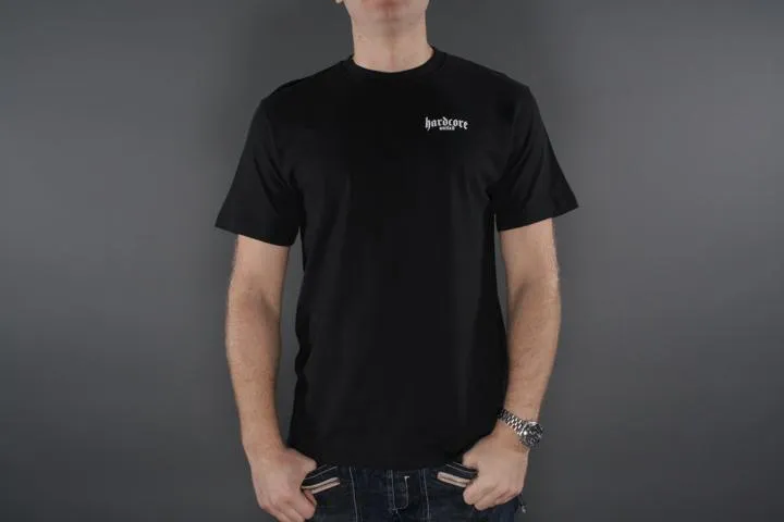 Svart kortärmad t-shirt med liten Hardcore United logo på bröstet samt stort tryck på ryggen. Litet Hardcore United märke längst ner på framsidan. 100% bomull. Herr, svart, XL.