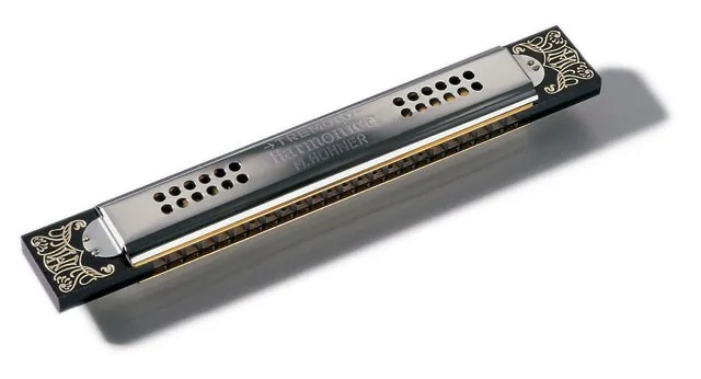 Tremolo tuned harmonicas are mainly used in traditional folk music. Blow and draw notes are situated in adjacent holes and the individual channel openings are horizontally divided into two, whereby the upper and lower half each contain one blow or draw note which sound simultaneously, in contrast to the single note arrangement used in Richter harmonicas. These notes are tuned to the same pitch but a few cents apart, so that they create a tremolo effect when played together. The resulting sound is characterized by a light, pulsating quality which is pleasing to the ear. A real peculiarity in the Hohner range is the Tremelo Sextet. Comprising of 6 Tremelo harmonicas in keys C, G, Bb, F A, D, and arranges in a star shape this instrument turns heads !