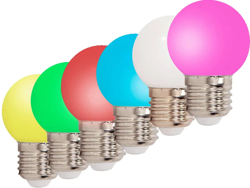6 x färgade lökar: röd, grön, blå, varmvit, gul och rosa