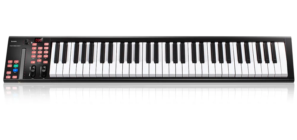 The Icon iKeyboard X Series combines 61 key piano keyboards with a single channel DAW controller in a rugged metal enclosure. Unlike many keyboard controllers with small plastic keys, this piano keyboard was specially designed by Icon with great attention to detail. The full sized keys are semi-weighted to provide realistic piano action. The controller also provides pitch bend and modulation wheels, and Octave and Transpose up/down buttons.