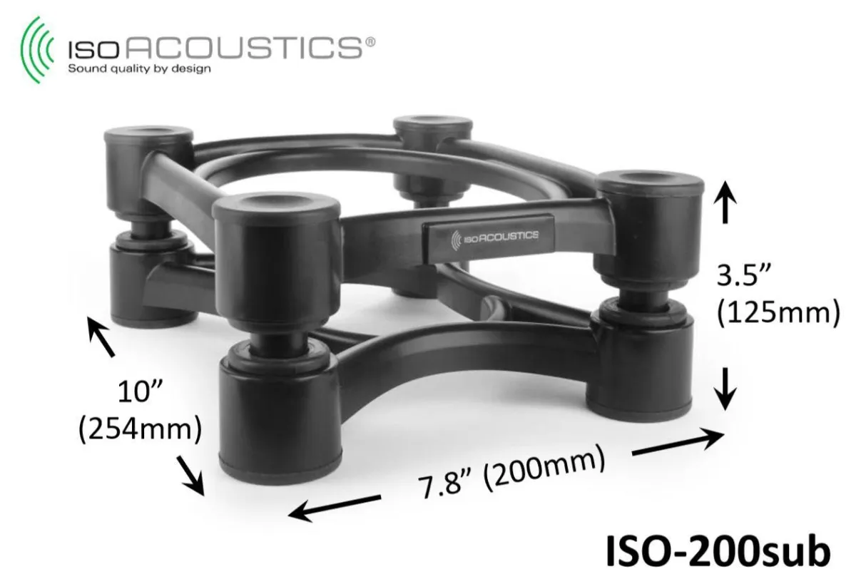 IsoAcoustics ISO-L8R200 Sub extra-large subwoofer stand will give you more low-end accuracy. Enjoy tighter, more extended bass - without shelling out for a new subwoofer! IsoAcoustics has built the ISO-L8R200 Sub according to the "PIF" (Placement, Isolation, Focus) principles of acoustic design. The results are immediately noticeable, and dramatic. Your old subwoofer will stun you with how accurate it is. Get better monitoring (without getting a new subwoofer) with IsoAcoustics ISO-L8R200 Sub subwoofer stand.