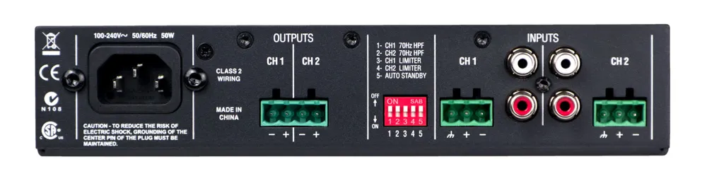The CSA2120 power amplifier is a professional-grade audio amplifiers built for installed sound applications. The amplifier s a two-channel model providing simple analog front-end processing, with a switch-mode universal power supply.