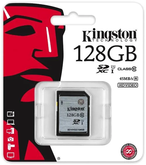 Kingston minneskort, SDXC, 128GB, UHS-I Class 10, 45MB/s