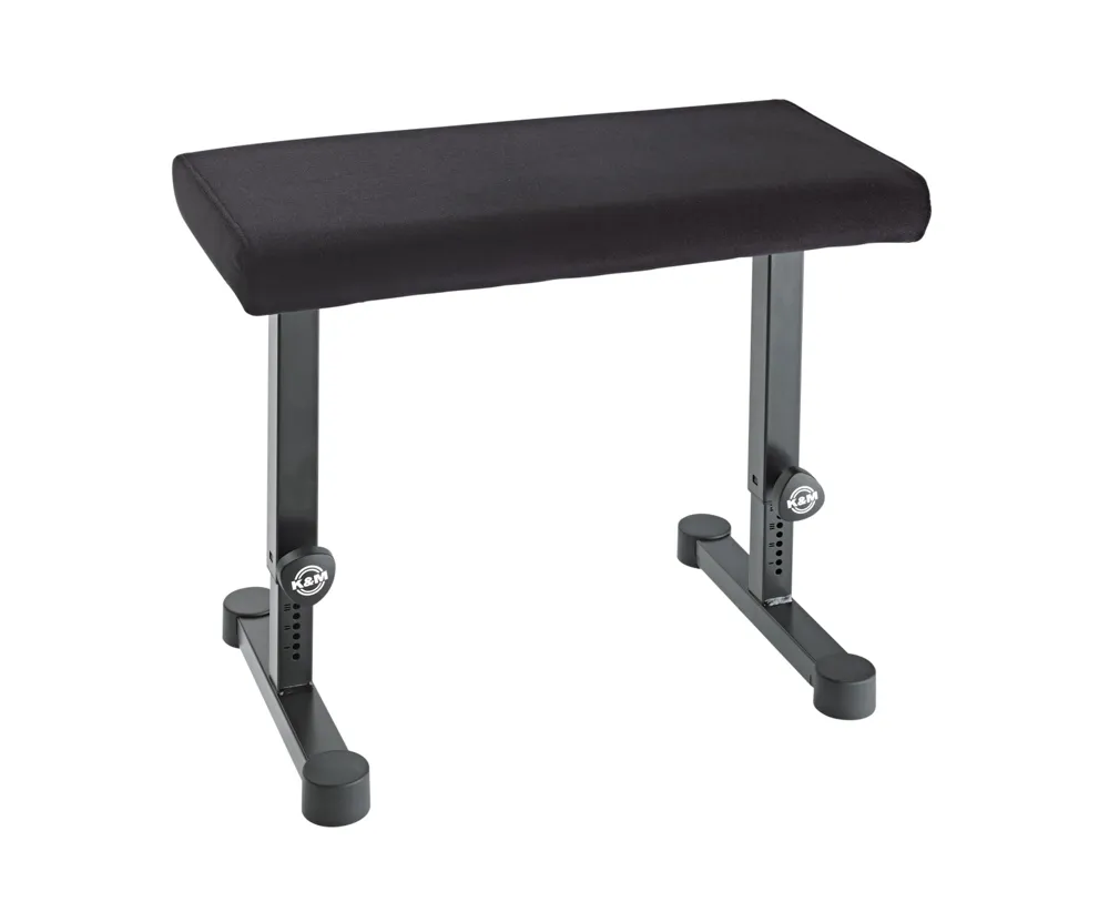 Dess kompakta stålrörkonstruktion och stora runda fotändar gör denna attraktiva bänk betydligt mer stabil. Utmärkt sittkomfort uppnås genom ett slitstarkt sätesöverdrag i tyg för njutbart och avslappnat tangentbordsspel. De tvåsidiga fjäderbelastade låsskruvarna gör precision höjdjustering enkel. Det finns en graverad höjdskala för att enkelt hitta din personliga miljö. Bänken kompletterar tangentbordsbord 18810/18820.