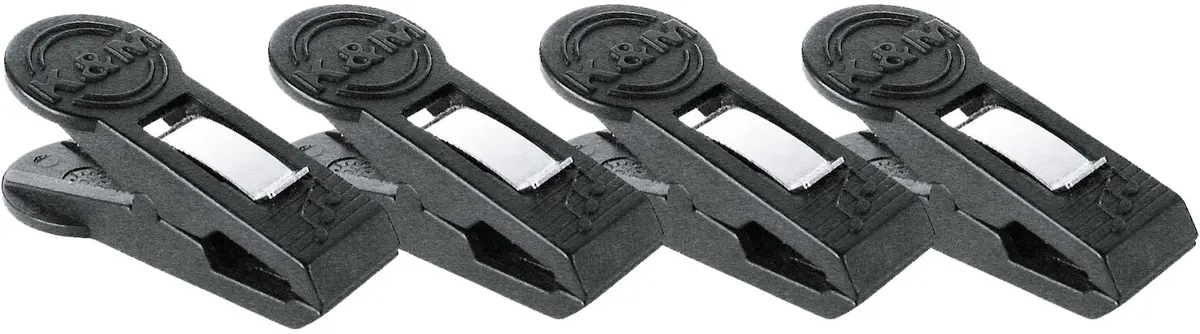 Smidiga pappersklämmor för att exempelvis hålla notblad på plats notställ på ett notställ. Levereras om 4st i en påse.