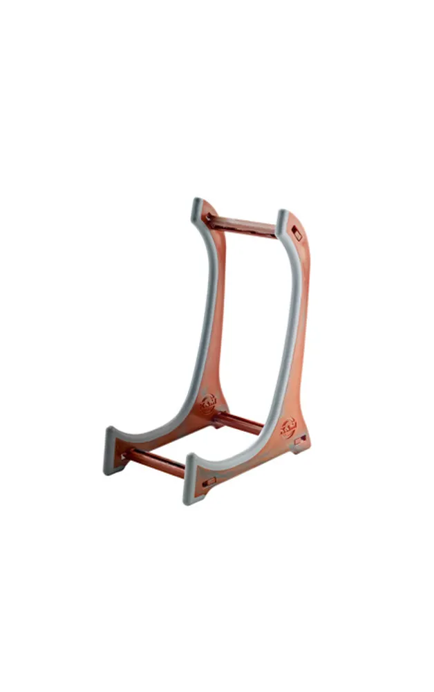 Perfect Presentation! The display stand is ideally suited for small string instruments, such as violins and ukuleles. The compact design of the stand places the instrument front and center- this is the best possible way to put the focus on your instrument. Be it at a music store, at an exhibition or at home, your instrument is always the center of attention on this attractive display stand. The body of the instrument rests on rubberized support arms ensuring that the instrument finish is protected. A solid four point support system and three cross struts ensure sold and stable footing. For storage and transport the extremely light stand folds to a small compact size.