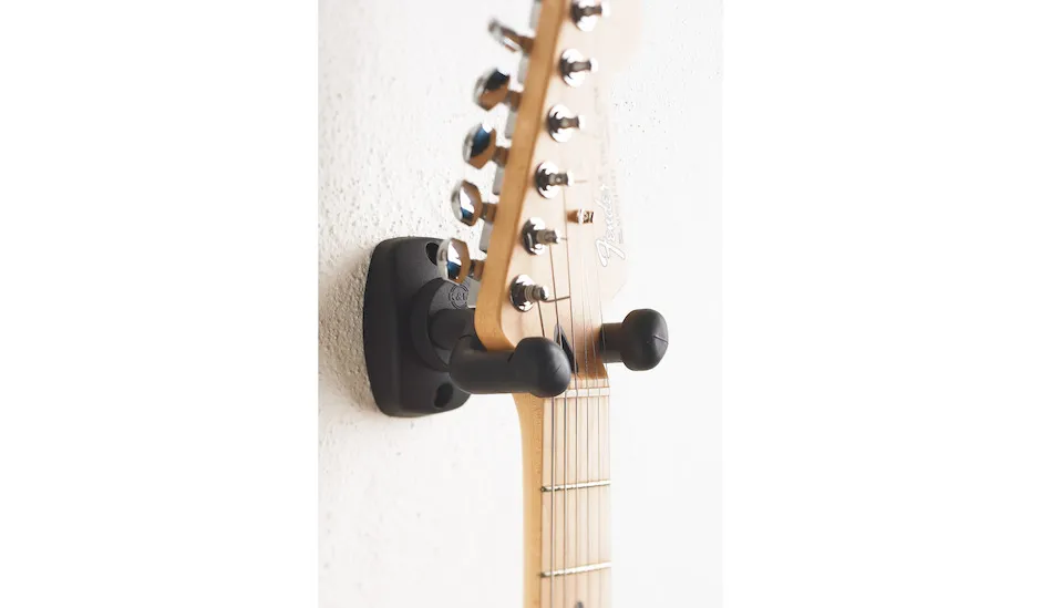 16250 caters for all your needs. The thick rubber covered support arms are safe and secure for all types of guitar. The arms are adjusted individually and are suitable for guitars with asymmetric necks. The wall mount closes under pressure to clamp around the neck of the guitar. The holder guard cams provide additional locking and prevent the guitar from turning in the holder. The wall mount is robustly constructed, but nonetheless low weight and requires minimal space to mount.