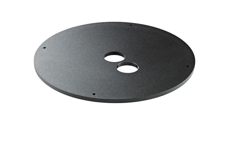 Separat viktplatta för högtalarstativ med M20-basplatta. Plattan har en diameter på 325 mm och en tjocklek på 8 mm. Det finns ett extra hål för en kabelgenomföring. Självhäftande gummibuffertar säkerställer halkfri och tyst drift. Vikten är 5 kg. Viktplattan kan enkelt monteras utan verktyg.