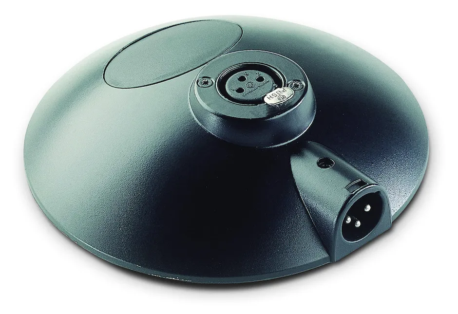 Beautifully designed, compact, zinc die-cast base. 3-pin XLR connections (male/female), completely mounted, without pushbutton or switch.