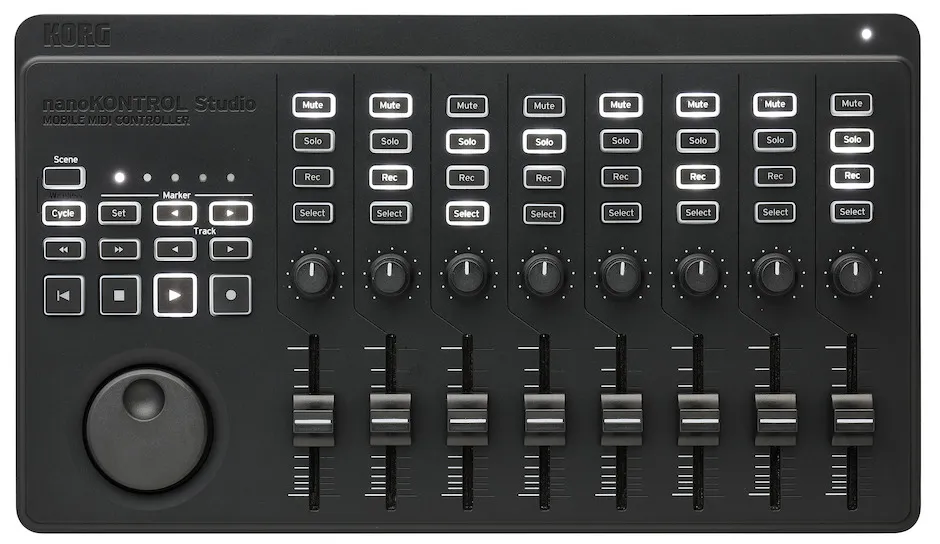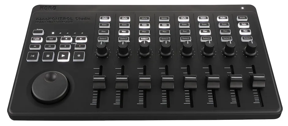 Smaller than a letter-sized sheet of paper, the nanoKONTROL Studio is designed for thinness. It’s the perfect size to easily carry in a bag and use with your computer. In spite of its compact size, its controllers provide generous power and a solid feel, making it a convenient and versatile MIDI controller.