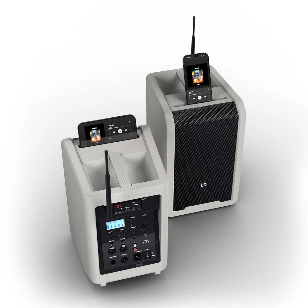 Bärbar batteridriven Bluetooth® PA-högtalare med mixer och 1x trådlös handhållen mikrofon.