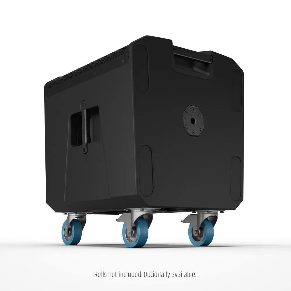 De robusta höljena av 18 mm laminerat trä kan staplas, medan M20-gängan på toppen låter dig montera huvudhögtalarna med hjälp av en distansstång. Transporten förenklas genom att rullar monteras bak. Hörnskydd skyddar kanterna under installationen. För att hålla ICOA SUB från att glida ur dina händer är dess fyra aluminiumgrepp täckta av gummi.