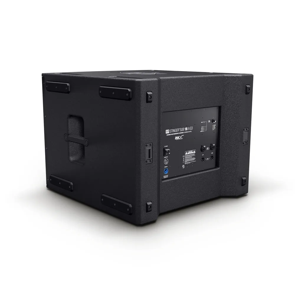 Stinger® SUB 18 A G3 innehåller LD Systems egenutvecklade DynX® DSP-teknik för att säkerställa prestanda på toppnivå och orörd, distorsionsfri basåtergivning hela tiden. Designad för att vara en riktig arbetshäst genomgående, det välstagna basreflexhöljet är konstruerat för horisontell och vertikal orientering. Den är gjord av styvt 18 mm björkskikt och belagd med ultratålig polyurea för extraordinär styrka och hållbarhet. Stinger® 18 A G3 har ett frontgaller i stål, M20-gängad stolpinsats, staplingsurtag och ergonomiska handtag ett attraktivt prissatt val för verkligt professionell ljudförstärkning. Ett stort urval av tillbehör underlättar driftsatta och installerade applikationer.