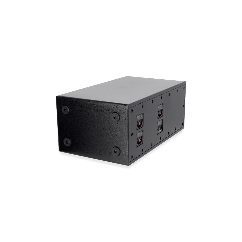 Kraftfull, dynamisk 2 x 8” bandpass-subwoofer. Dess kompakta mått gör det möjligt att placera subbasen var som helst, både vertikalt och horisontellt. En 2-kanals effektförstärkare är allt som krävs för att driva t.ex. en subbas med upp till 4 satelliter. Robust MDF-hölje med strukturerad finish.