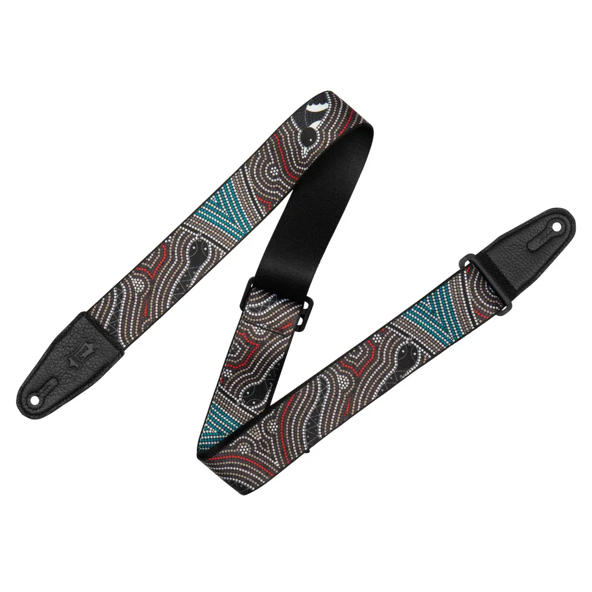 Denna 5cm breda rem för antingen gitarr eller bas är en av de mer iögonfallande remmarna från Levy's populära och omfattande sortiment av remmar. Den är handgjord på deras fabrik i Nova Scotia i Kanada, och kvaliteten är helt i toppklass. Remmen är tillverkad av polyester med ett tryck inspirerat av australisk "dot art", och är monterad med läderändar. Den är justerbar från 89 cm upp till hela 152 cm, vilket gör att den passar lika bra för jazz som för grunge.