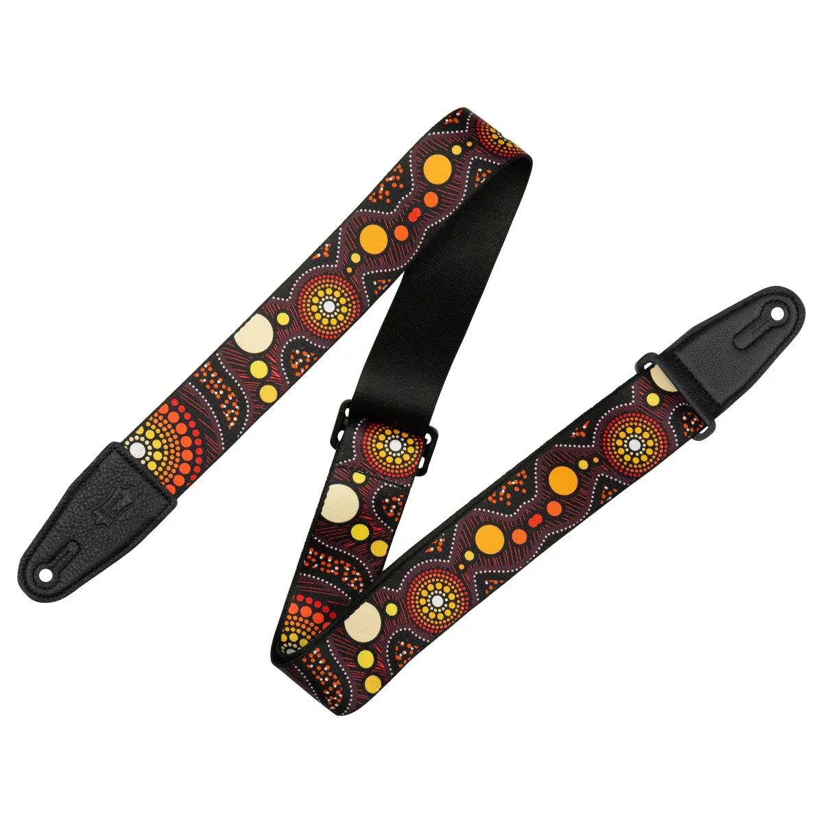 Levy's nya Down Under gitarrremmar är fina tolkningar av den "dot art" vi känner från den ursprungliga befolkningen i Australien. Det är vackra motiv inspirerade av den traditionella "dot art", som vanligtvis illustrerar skönheten i naturens värld i alla dess aspekter. Down Under-remmarnas motiv inkluderar djurliv, landskap, universum och allt däremellan.