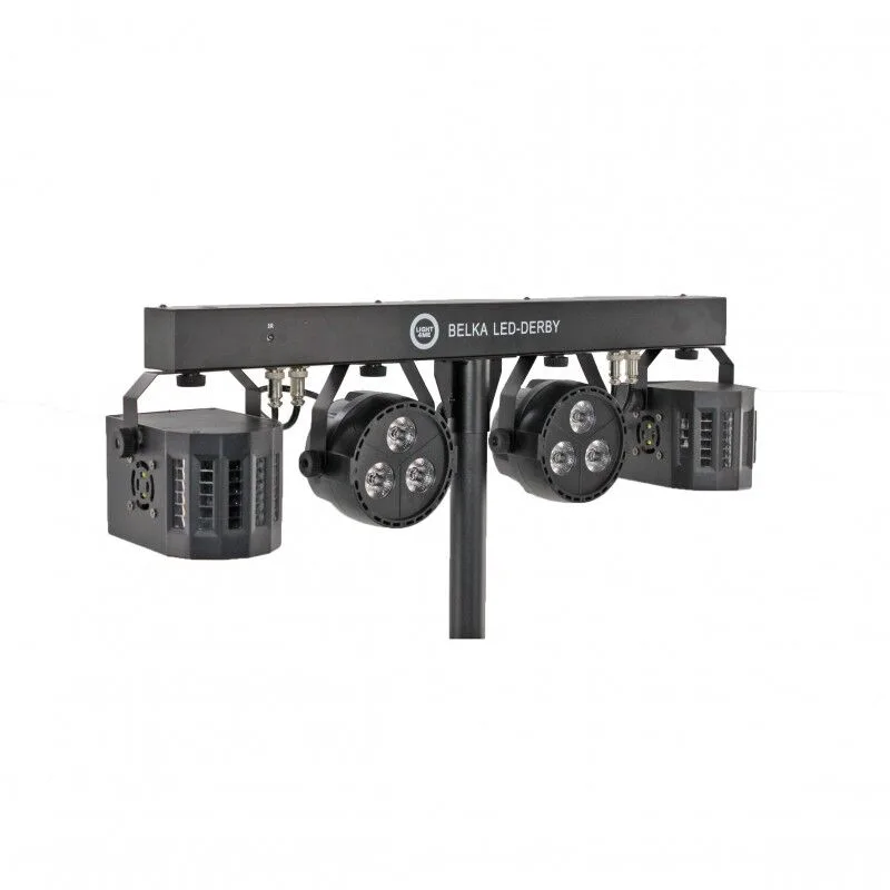 LIGHT4ME T-BAR LED DERBY PAR är en bärbart ljuspaket för mobila DJ:ar och evenemangsband. Satsen innehåller en bar med LED-effekter, ett robust, justerbart stativ, en fjärrkontroll och praktiska bärväskor så att vi kan ta med oss utrustningen i vilken bil som helst och på vilken scen som helst.