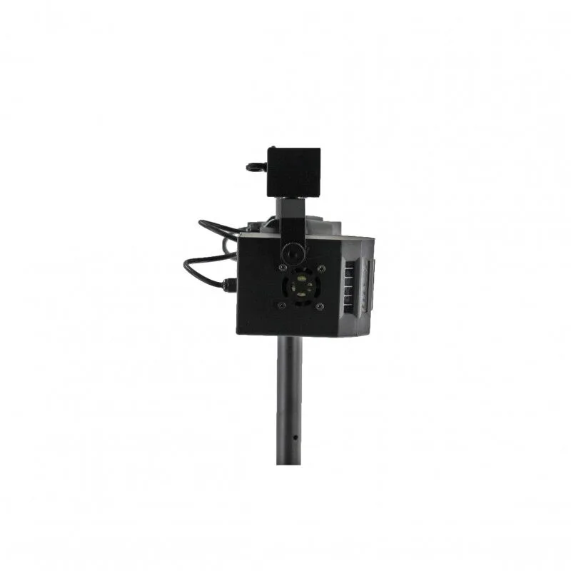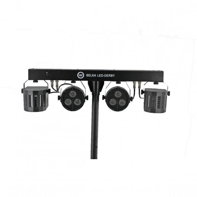 Belysningseffekten har en trådlös fjärrkontroll så att vi enkelt kan styra belysningen. På stången finns två derby-effekter (totalt 15 W) med RGBW-färgpalett och två LED PAR-strålkastare (totalt 9 W) som fungerar i RGB-färger.