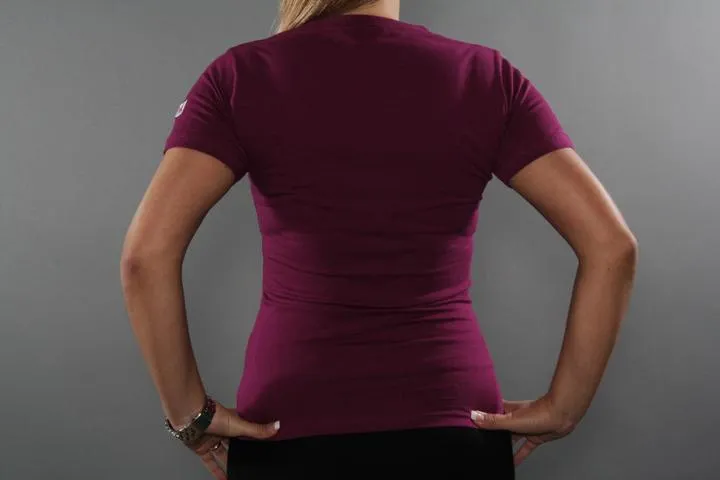 Klassisk kortärmad t-shirt med tryck på bröstet. 95% bomull, 5% spandex. Dam, Firewall Purple, Small.