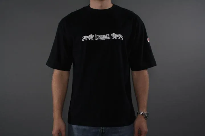 Kortärmad t-shirt med tryck på bröstet samt litet Lonsdale märke på vänster ärm. 100% bomull. Herr, svart, XL.