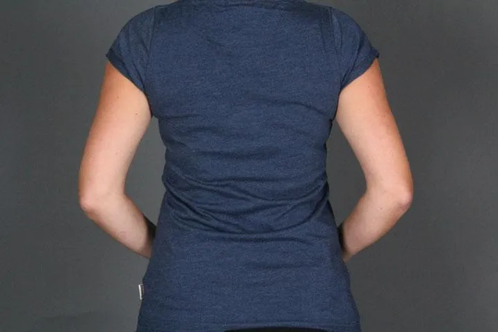 T-shirt, Soft touch-tryck i vinatge-look på bröstet. 60% bomull, 40% polyester. Dam, marinblå, small.