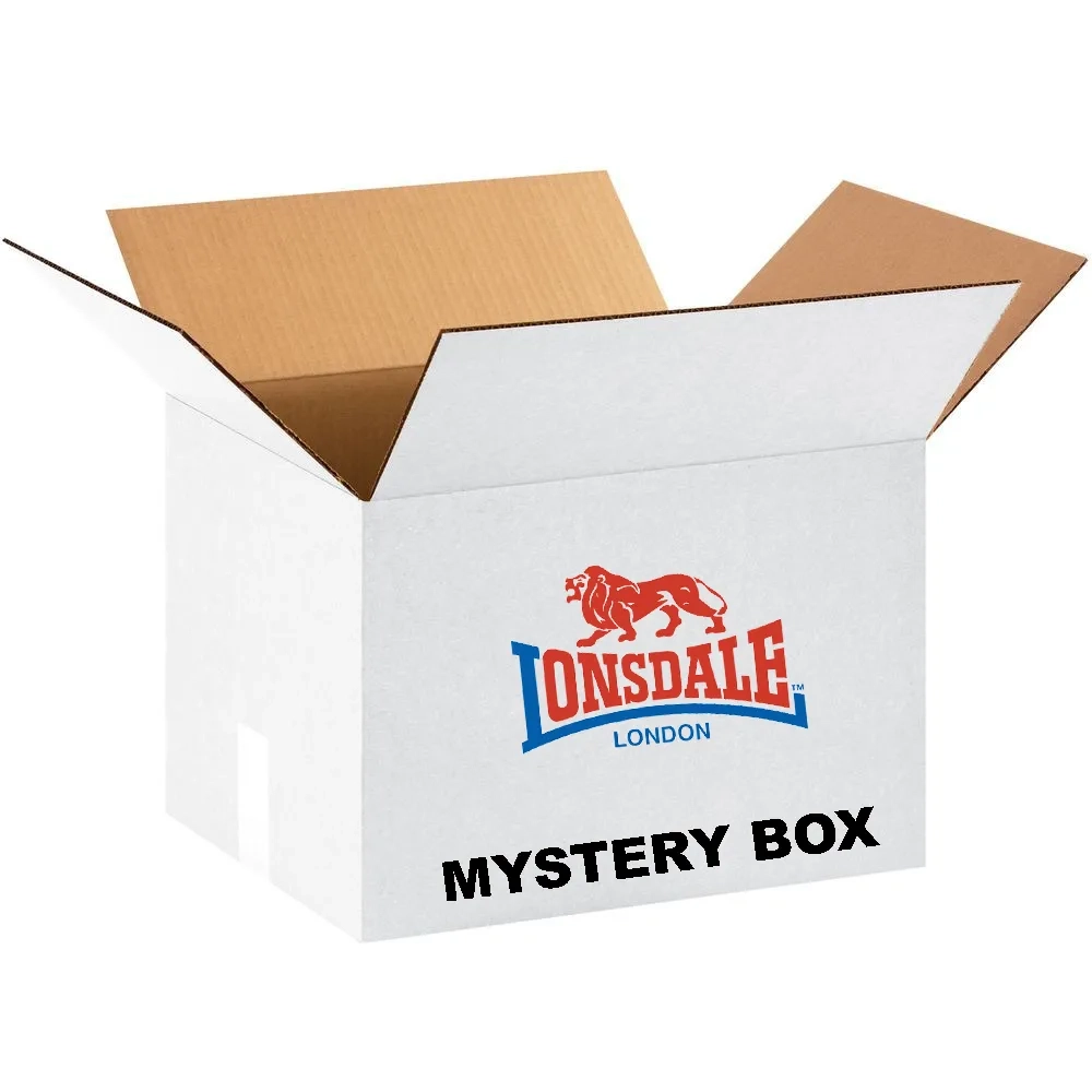 En "Mystery Box" från Lonsdale London som innehåller kraftigt rabatterade produkter för Herr i storlek Large.