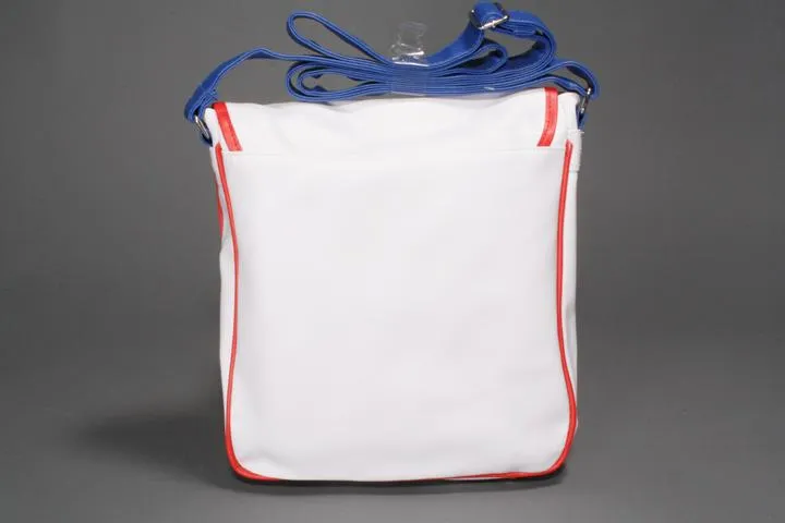 Unisex, Vit, röd och blå axelremsväska i PVC, 27.5x9x30cm.
