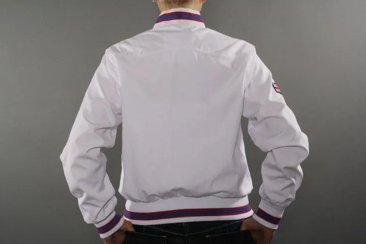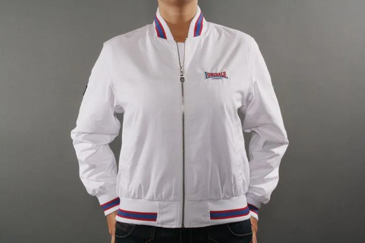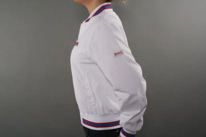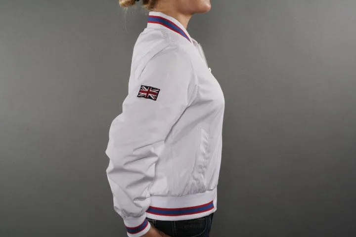 Sportig jacka för tjejer med brodyr på bröstet. Material: 40% bomull, 60% polyester. Dam, vit, medium.