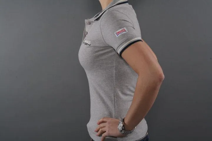 Polo med broderad Lonsdale logo på vänster bröst. Lejon broderat på kragen. 210 g/m2, 95% bomull, 5% spandex pique. Dam, Grå, XL.