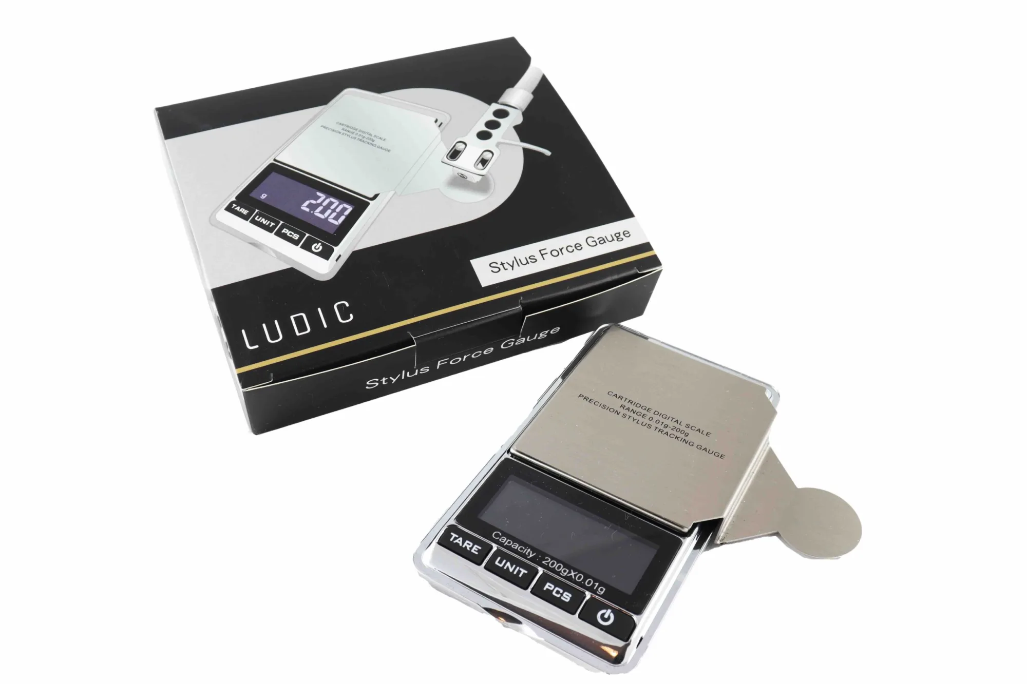 LUDIC Aure nålkraftsvåg för mätning av nålens vertikala spårkraft.