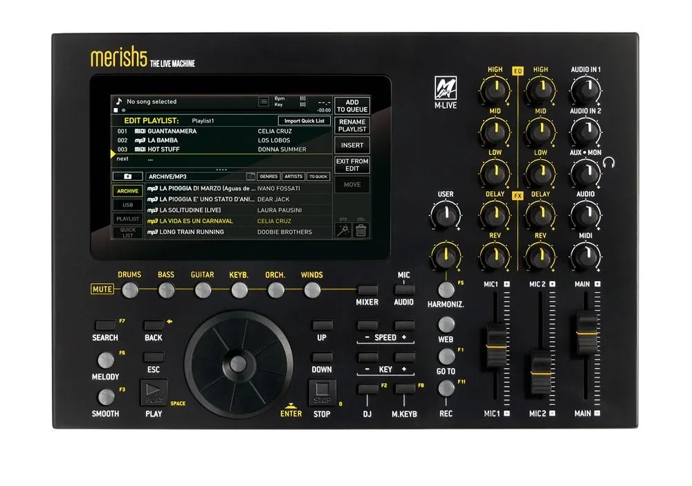 Utöver dessa viktiga nyheter har Merish5 optimerats i alla komponenter: den digitala mixern har förstärkts och många extremt användbara funktioner har lagts till för ett perfekt framträdande på scenen.