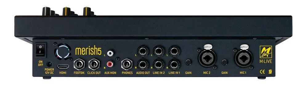 Merish5 har en kraftfull Digital Mixer, för dig som vill spela live utan några komplikationer men med högsta kvalitet. Mixern har 2 mikrofoningångar, 2 linjeingångar, styrning av de två interna spårkanalerna, klickutgång för metronomen, utgång för monitor eller hörlurar.