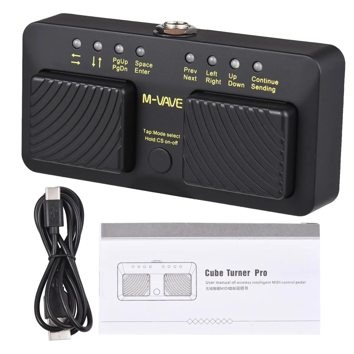 Cube Turner Pro är en Bluetooth-fotpedal designad för att göra det enkelt att bläddra i noter, texter och bilder på din enhet. Den trådlösa anslutningen gör det möjligt att byta sidor med en fotrörelse, så att du kan hålla fokus på ditt framförande utan att behöva använda händerna. Den är kompatibel med telefoner, surfplattor och datorer och kan användas för att styra programvara, visa bilder och till och med ersätta tangenter på datorn.