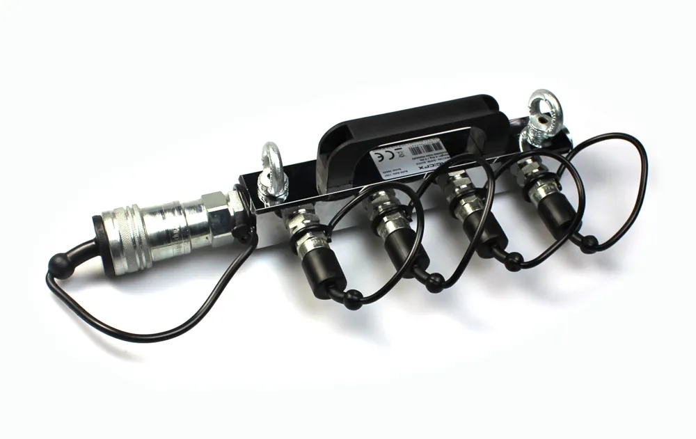 CO2 högtrycksfördelningsblock - 4x 3/8 slang in, 1x 3/4 ut