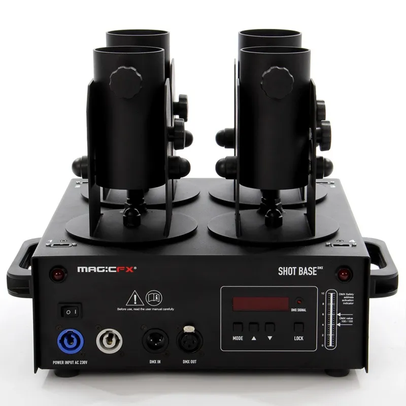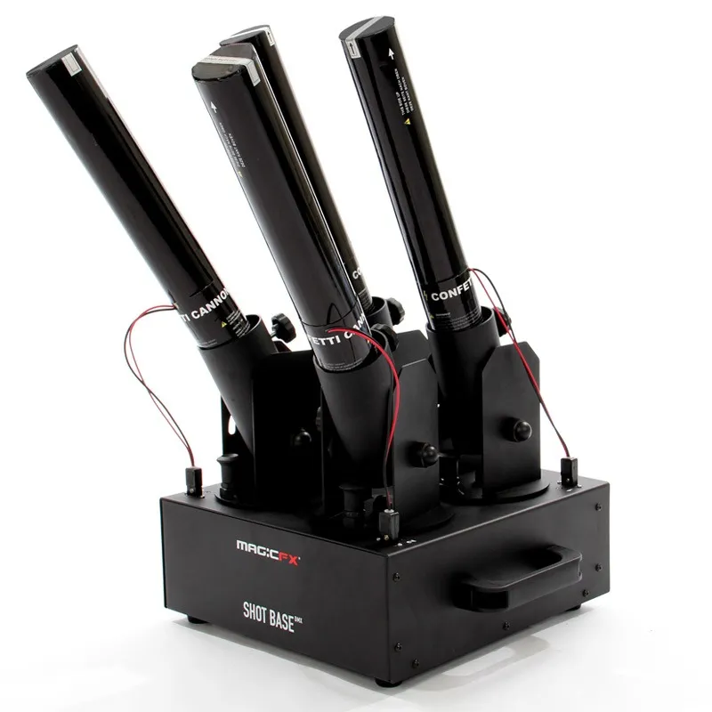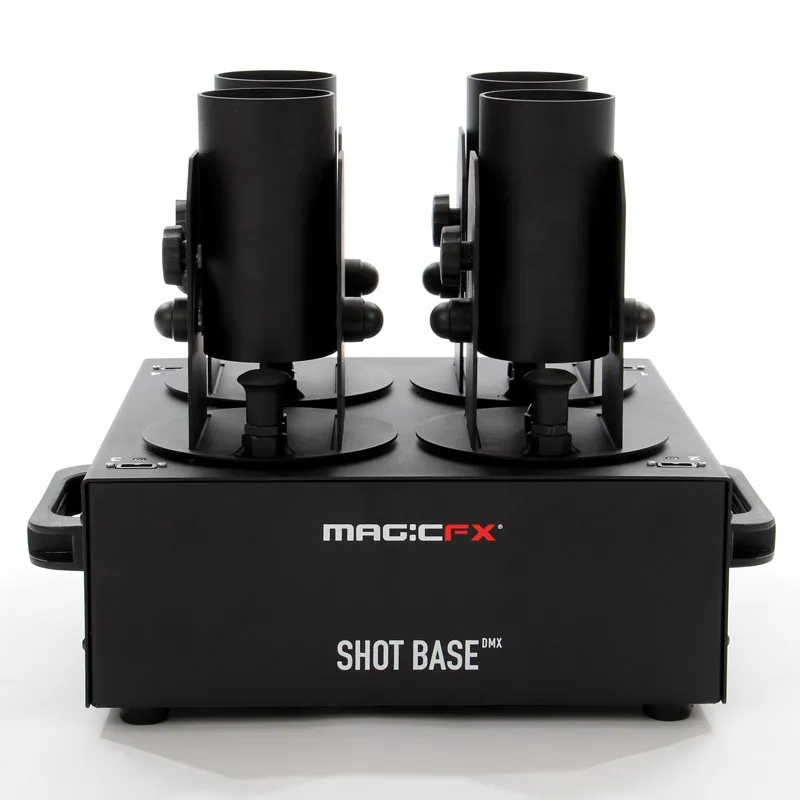 Den nya Shot Base DMX är det första professionella DMX-konfettiskottsystemet. Shot Base är designad för att avfyra förfyllda elektriska konfetti och/eller streamerkanoner. Föreställ dig de oändliga möjligheterna!