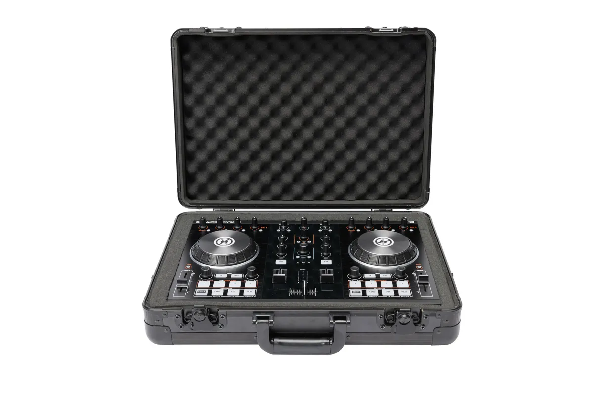 The new CARRY LITE DJ-CASE L is a very lightweight and compact carrying solution for your DJ-equipment and comes in a nice full-black matt finishing. Constructed from laminated MDF panels and anodized aluminum profiles the CARRY LITE design features a fully padded interior with a variable pick & pluck foam that allows to create individual adapted compartments for various-sized DJ-controllers such as Pioneer DDJ-SB3, NI Kontrol S2 MK3, Denon MC-3000 or most Hercules DJ-controllers. The pick & pluck foam consists of two separate layers providing the additional option to create another slot underneath the controller for laptop or cable storage.