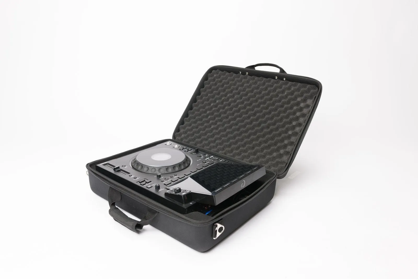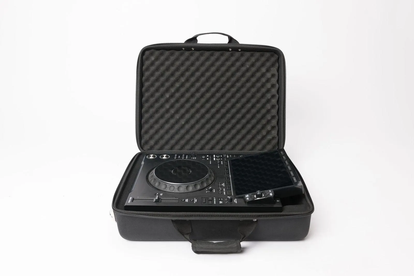 Crafted from a rigid and lightweight Durashock molded EVA shell, the interior is equipped with a protective molded EVA inlay along with high-density EVA and egg-crate foam to safeguard the display, jog wheels, and faders.