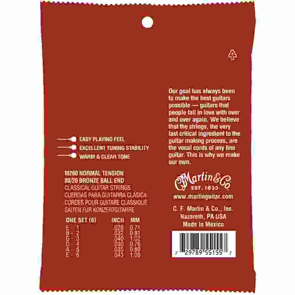 Martin Guitar Classical Nylon - Nylonsträngar med Ball End - Normal Tension M260