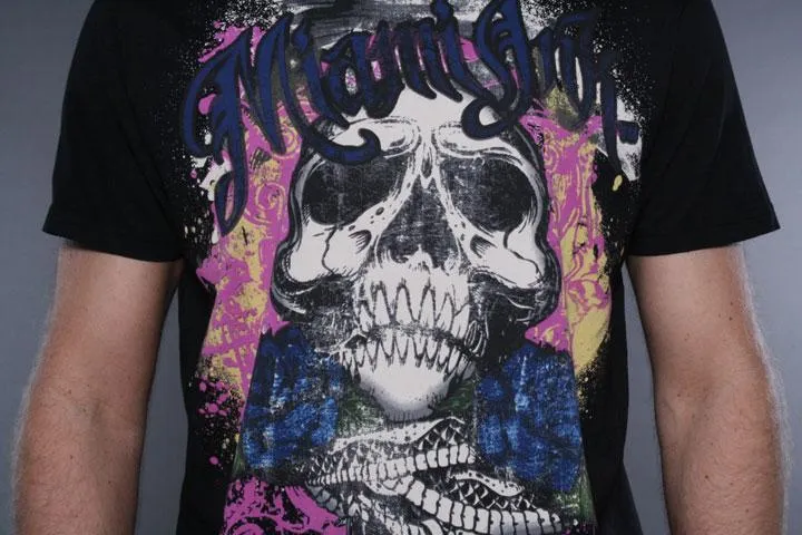 Svart t-shirt från Miami Ink med stort flerfärgat tryck på framsidan. 100% bomull, large.