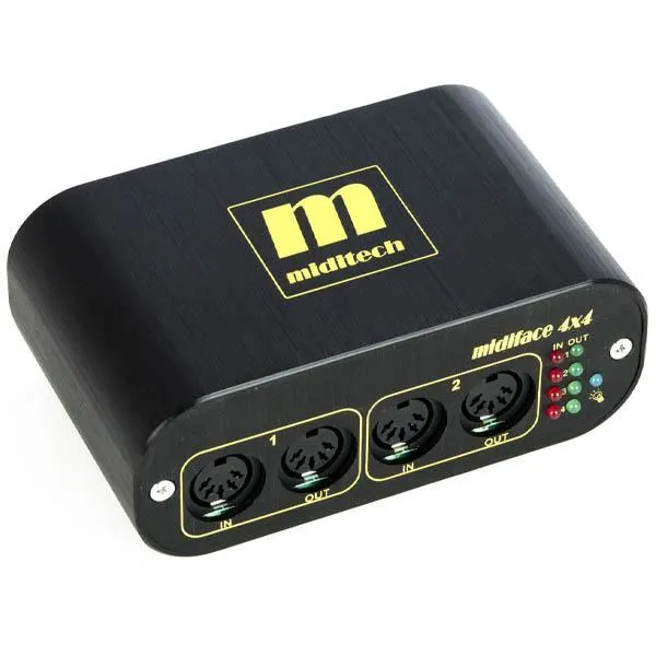 4-kanals MIDI Interface med 4 x MIDI In och 4 x MIDI Out. Plug’n’Play kompatibelt utan drivrutiner med MAC OSX, Windows XP SP2, Windows Vista, Windows 7, 8 och 10.
