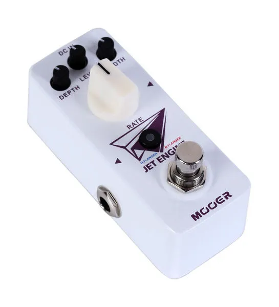Power supply with 9V DC power supply unit with 2.1 x 5.5 mm barrel connector, polarity (-) inside (Mooer PDNW-9V2A-MP, not included)