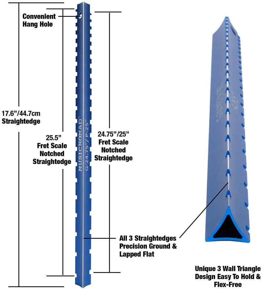 Rätskena med bandspår för att kontrollera hals och band på din gitarr.