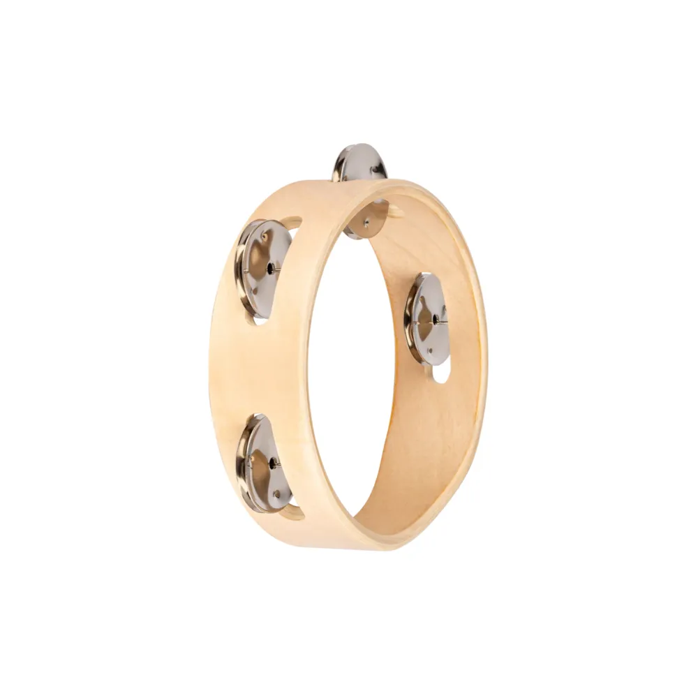 NINO941. Trätamburin som har en robust ram med fyra jingle-par som ger ett snyggt pärlande ljud.