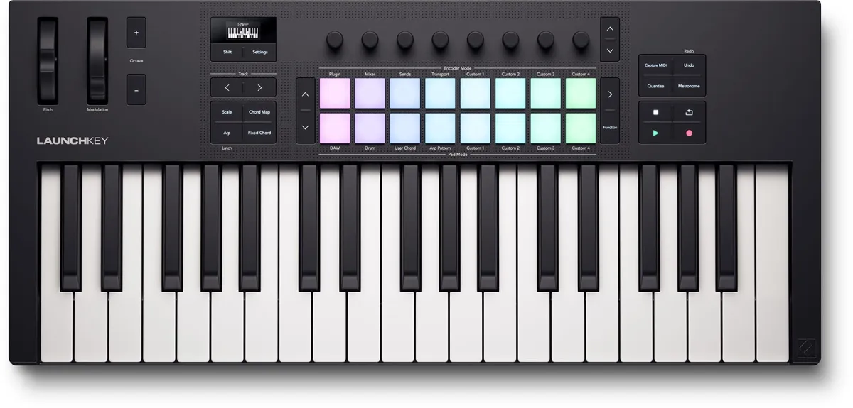 Launchkey 37 inkluderar sofistikerade Chord- och Scale-lägen, perfekt synkroniserade med OLED-skärmen för att hålla dig i nyckeln. Den har också en redigerbar arpeggiator, tre ackordlägen för snabba musikaliska progressioner och en ackorddetektor som visar det aktuella ackordet på OLED-skärmen.