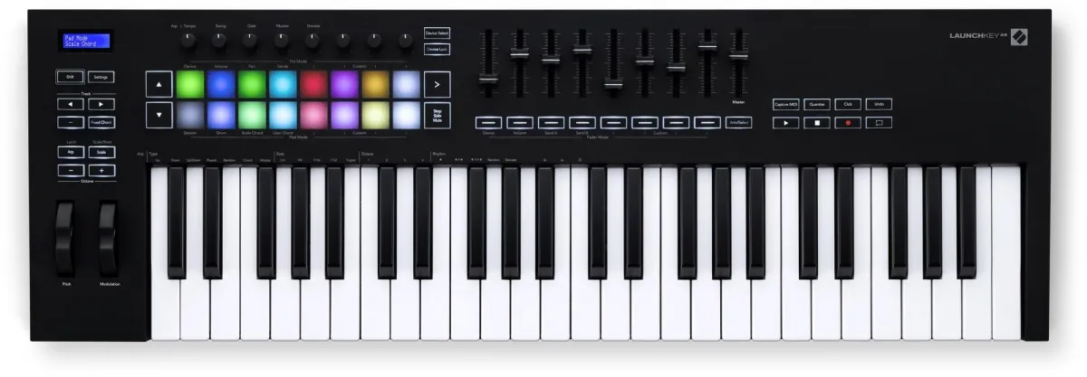 Launchkey-plattformen har alltid handlat om flexibilitet, och MK3-revisionen bär detta mantra i sin kärna. Större, förbättrade hastighetskänsliga pads ger större kontroll över dynamiken, och åtta fasta vridknappar ger liv åt din mjukvara till hands. Integrationen med Ableton Live är verkligen sömlös, med en dedikerad knapp för att aktivera Capture MIDI-funktionen, plus spårarms-, kvantiserings-, klick- och loopkontroller, för att flyga runt din session snabbare än någonsin.