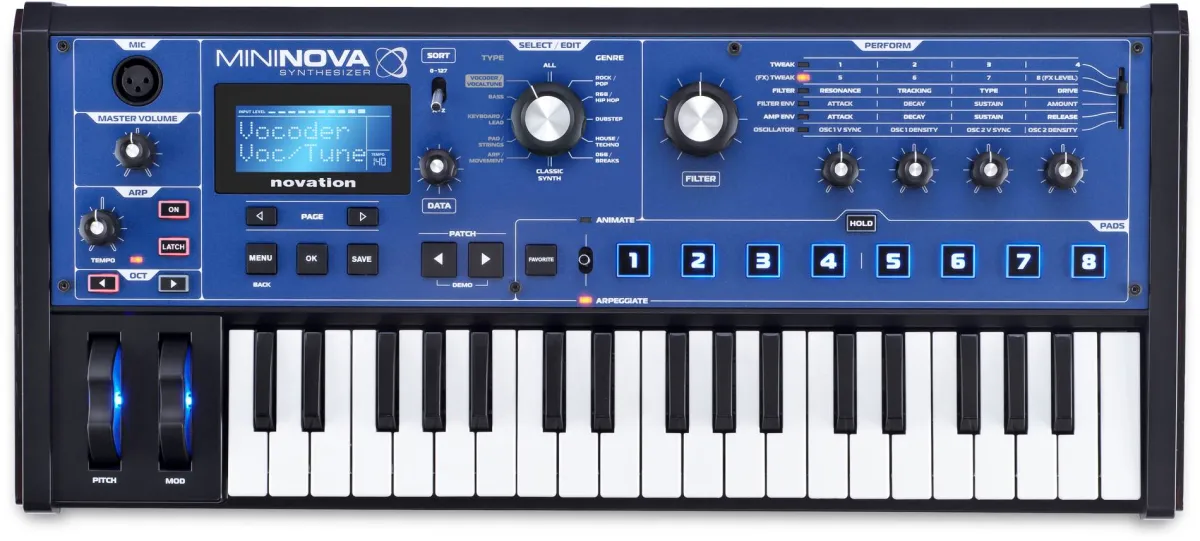 MiniNova har Novations signatur Nova-serie synth-motor ombord, som kan skapa och redigera massiva ljud med upp till 18 röster och kraftfulla effekter